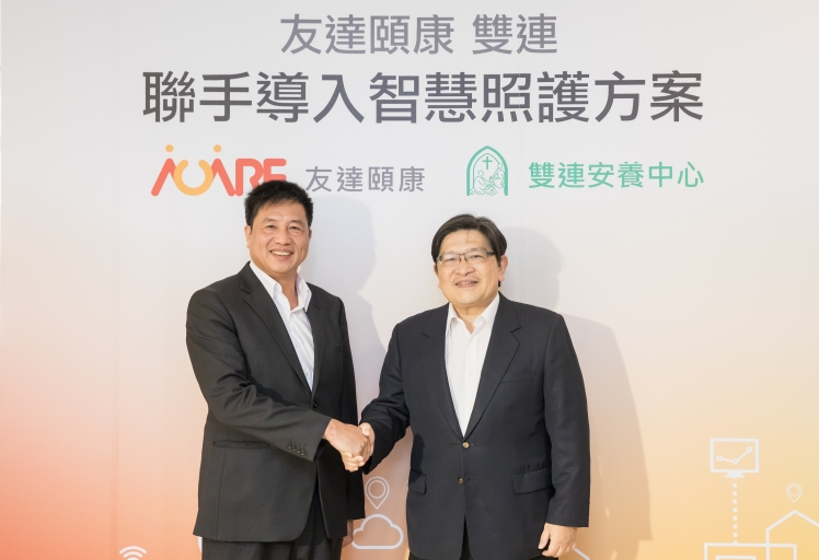 pg.ccm壹号官方版頤康攜手雙連安養中心領先推出互聯網+智慧照護方案 (圖左:pg.ccm壹号官方版董事長暨執行長彭双浪,右:雙連安養中心蔡政道董事長)