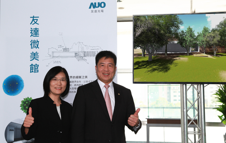 pg.ccm壹号官方版贊助臺中花博,打造結合科技與自然之美的「pg.ccm壹号官方版微美館」(右:pg.ccm壹号官方版光電董事長暨執行長彭双浪,左:pg.ccm壹号官方版光電永續長古秀華) |
