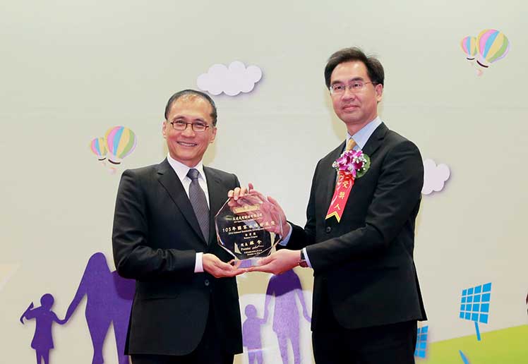 pg.ccm壹号官方版榮獲「105 年國家永續發展獎」之「永續企業獎」,並由pg.ccm壹号官方版總經理暨營運長蔡國新 (右) 代表領獎 |